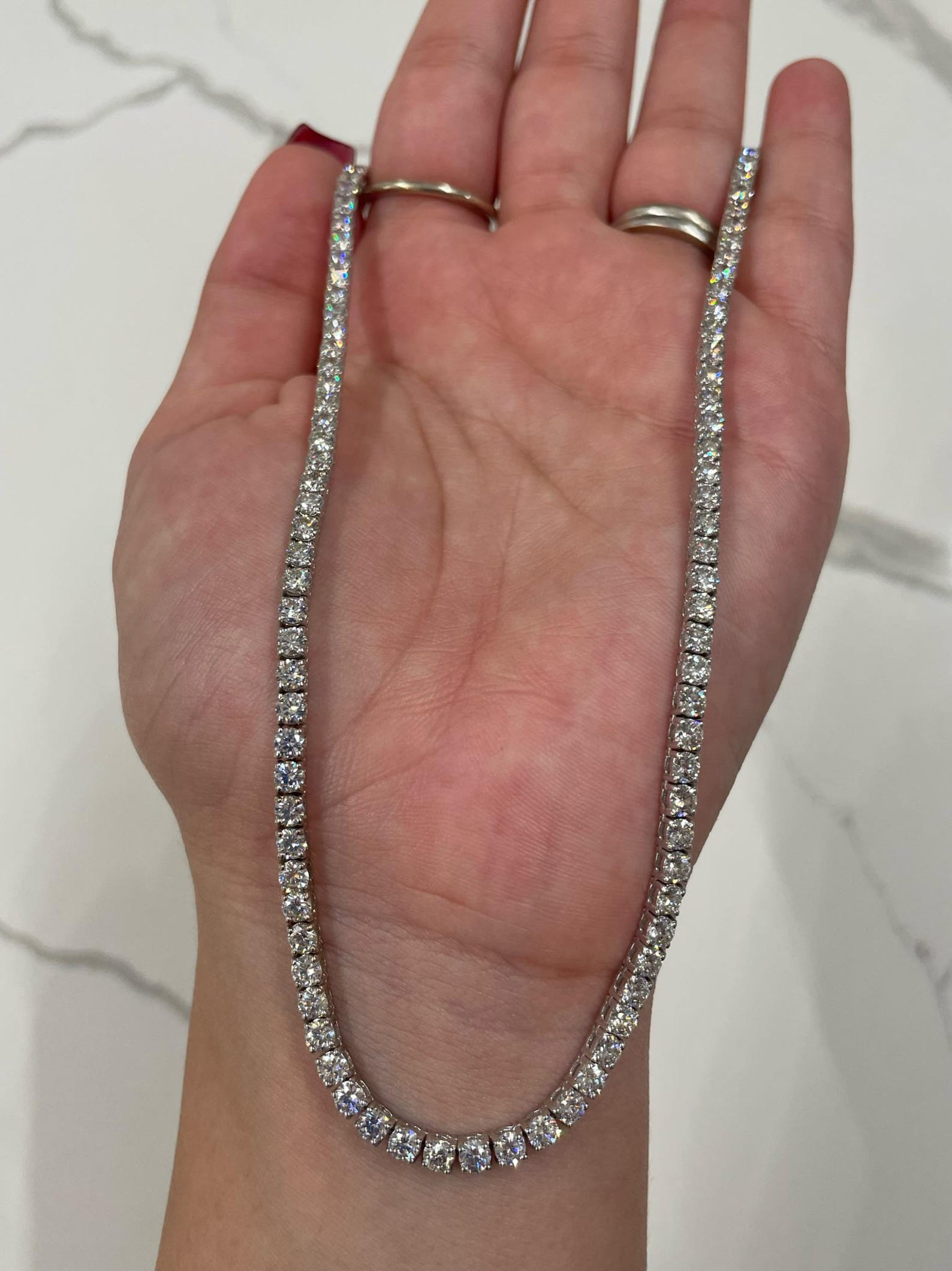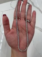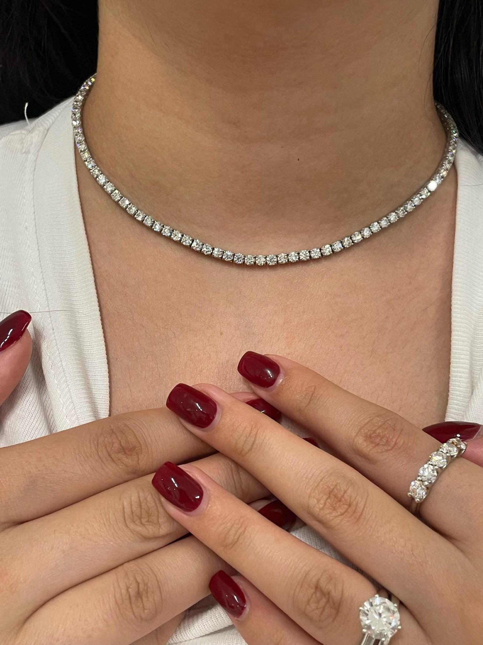 Featuring the Round Cut, the most beloved and time-tested shape in fine jewelry, this necklace is engineered for ultimate sparkle. With 58 precision-cut facets, each stone in this 12 CT masterpiece maximizes fire and brilliance, catching and reflecting light from every angle. Its perfectly symmetrical design ensures a balance of elegance and boldness—ideal for making a powerful yet graceful statement.