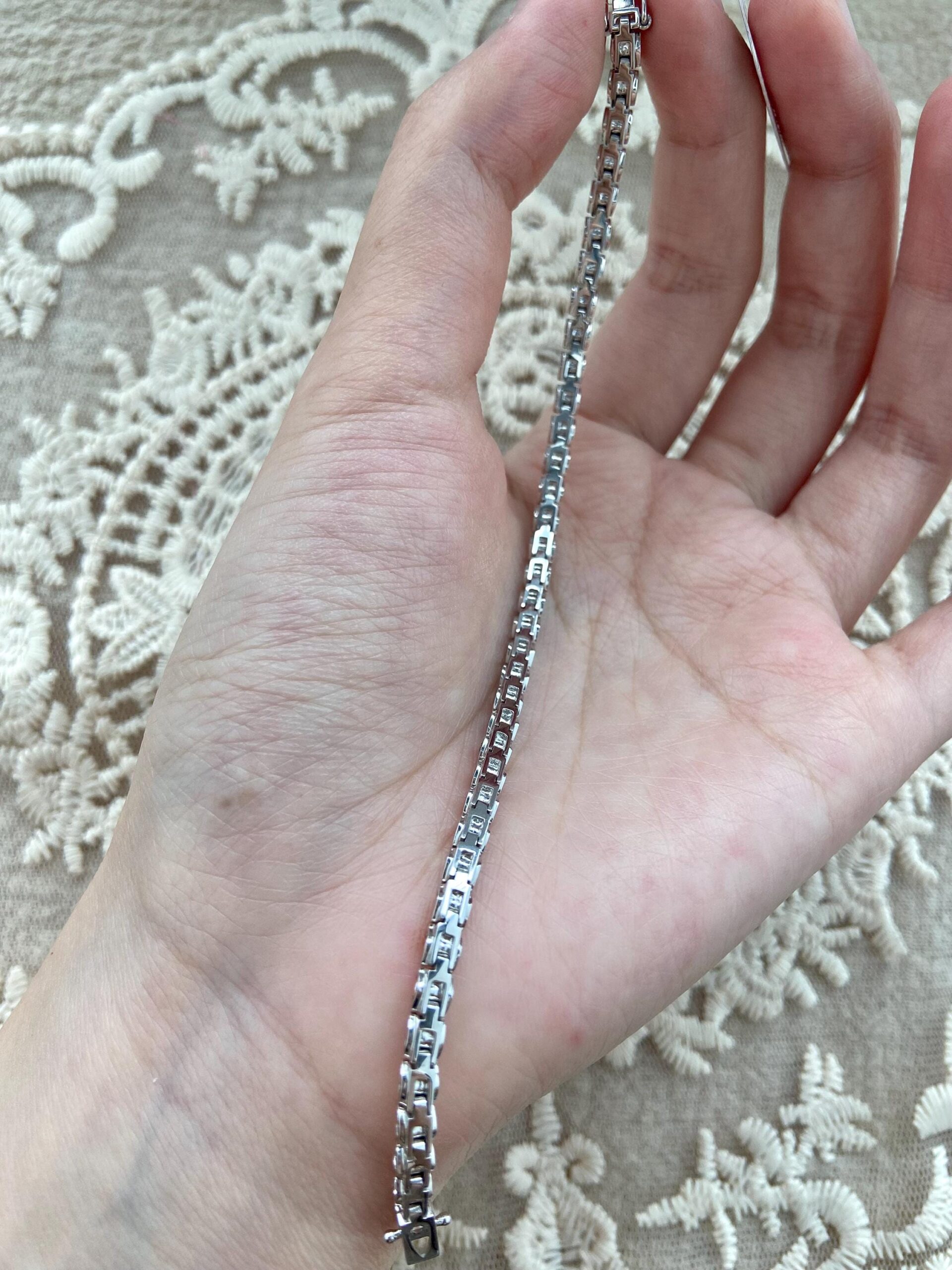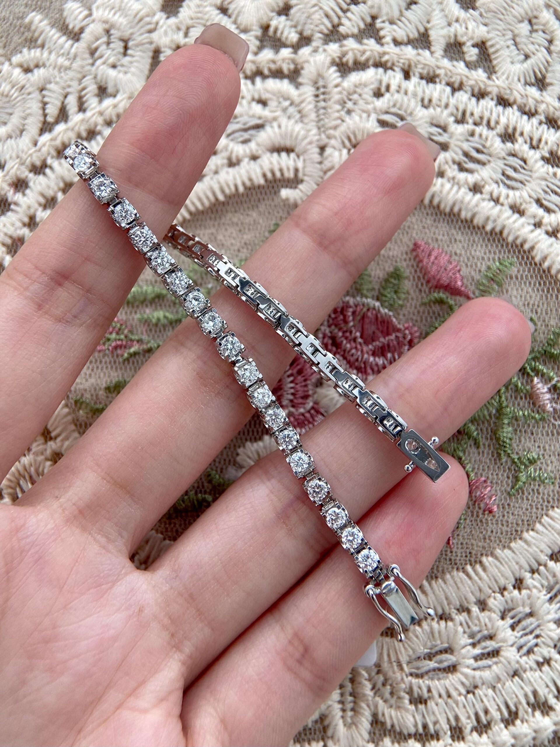 At 15.5 cm, this bracelet offers a secure and graceful fit, especially ideal for slimmer wrists. The crisp white moissanite stones sparkle effortlessly in any setting—whether paired with gold, platinum, or silver. With 3 carats of total brilliance, this bracelet delivers the luxury look of fine diamonds while staying lightweight, wearable, and versatile for all occasions.