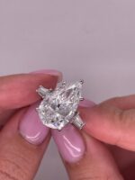 Whether you’re designing a bespoke engagement ring or adding an iconic piece to your collection, this 9 CT moissanite beauty adapts to any vision. The pear centerpiece elongates the finger, the baguettes frame it with sleek lines, and round cuts complete the harmony with radiant sparkle. Ideal for bridal wear, luxury gifts, or bold everyday fashion—this combination of cuts and carat weight makes a powerful style statement. Durable, dazzling, and unforgettable.