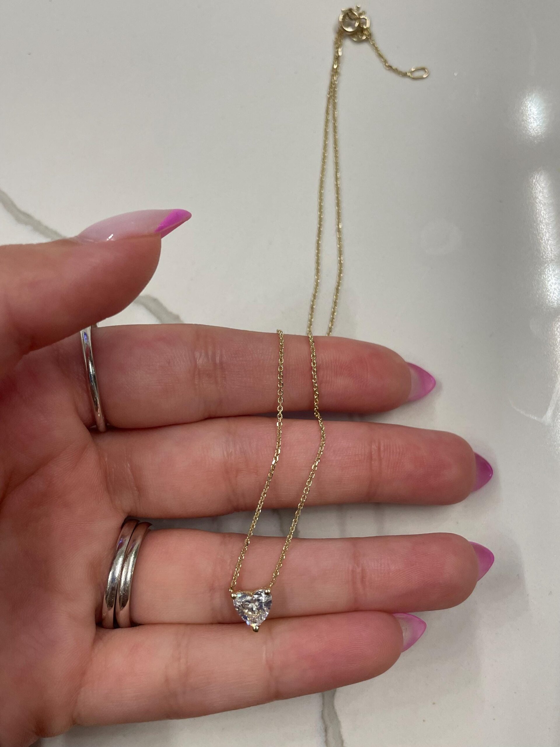 Celebrate love, elegance, and individuality with this 1 Carat Heart Cut Moissanite Necklace in shimmering white. Set on a graceful 43 cm chain, this enchanting piece rests perfectly at the collarbone, drawing attention to its beautifully faceted heart-shaped gem. Whether it’s a romantic gift or a personal keepsake, this necklace is more than jewelry—it’s a statement of passion and timeless connection.
