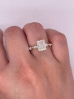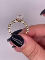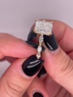 The Radiant Cut shines with unmatched intensity, thanks to its 70-facet design that maximizes light reflection for fiery brilliance. The Marquise Cut, with its elongated silhouette and pointed ends, adds vintage charm and a slimming effect on the finger. Together, they create a dynamic sparkle and sophisticated profile. Crafted from lab-created white moissanite, this gem is a sustainable, ethical, and equally stunning alternative to natural diamonds—ideal for modern romantics.