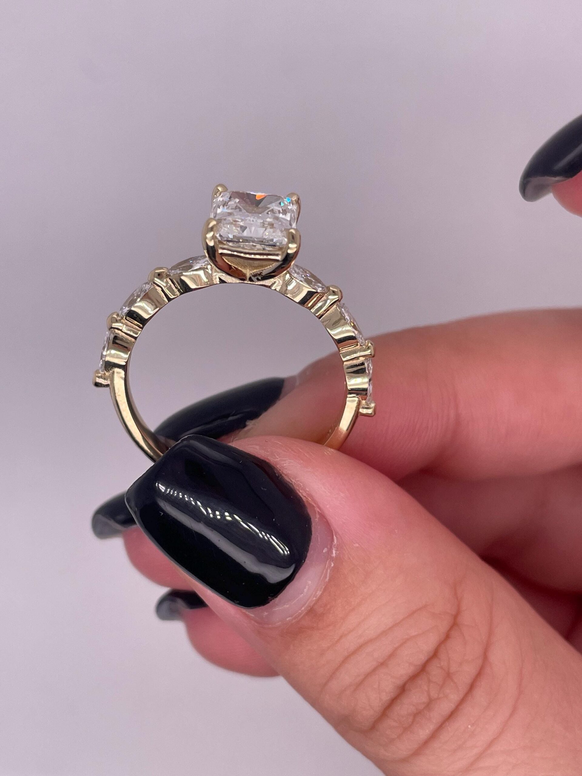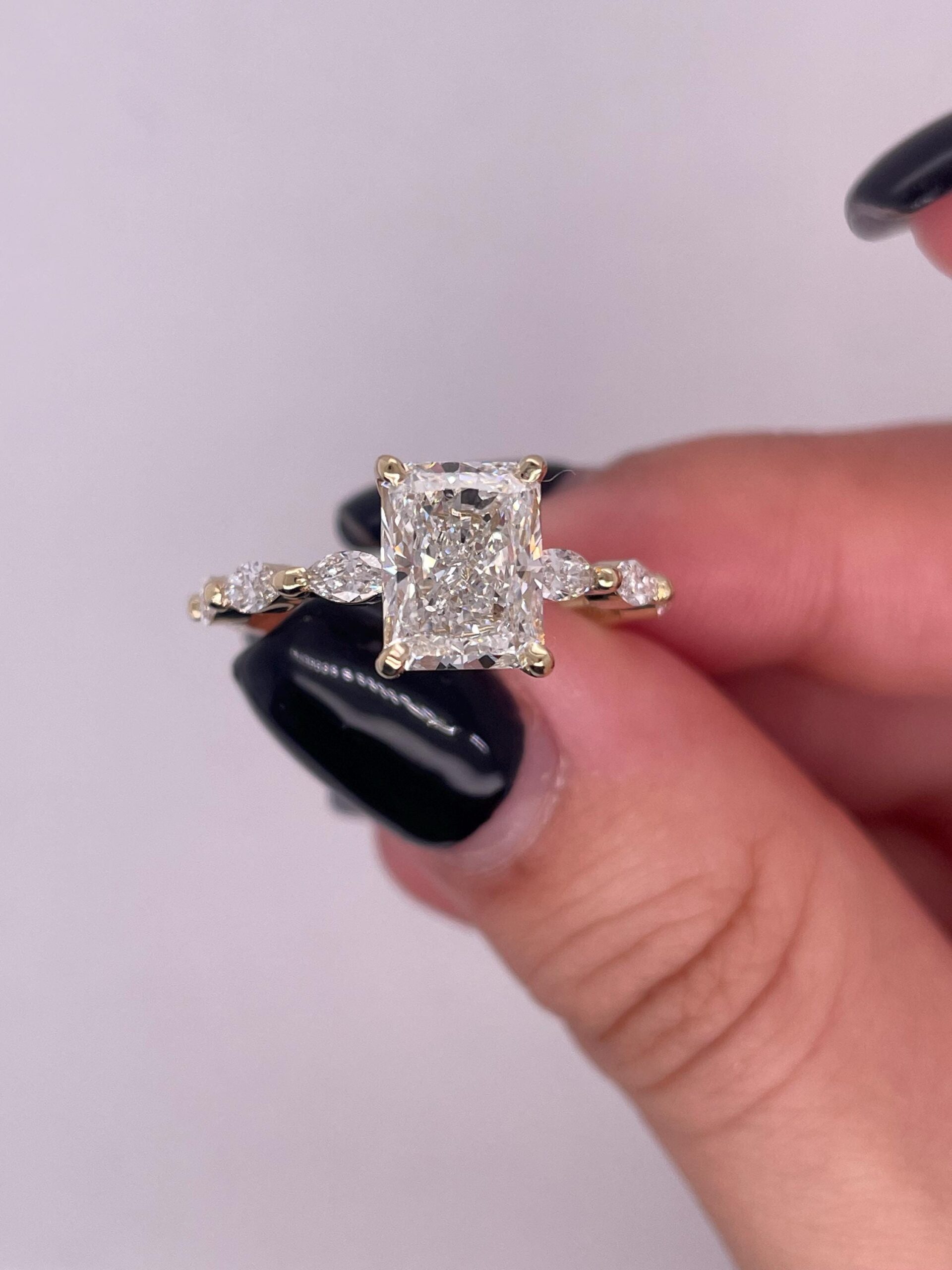 Radiant-Cut Diamond Engagement Ring with Side Marquise Accents